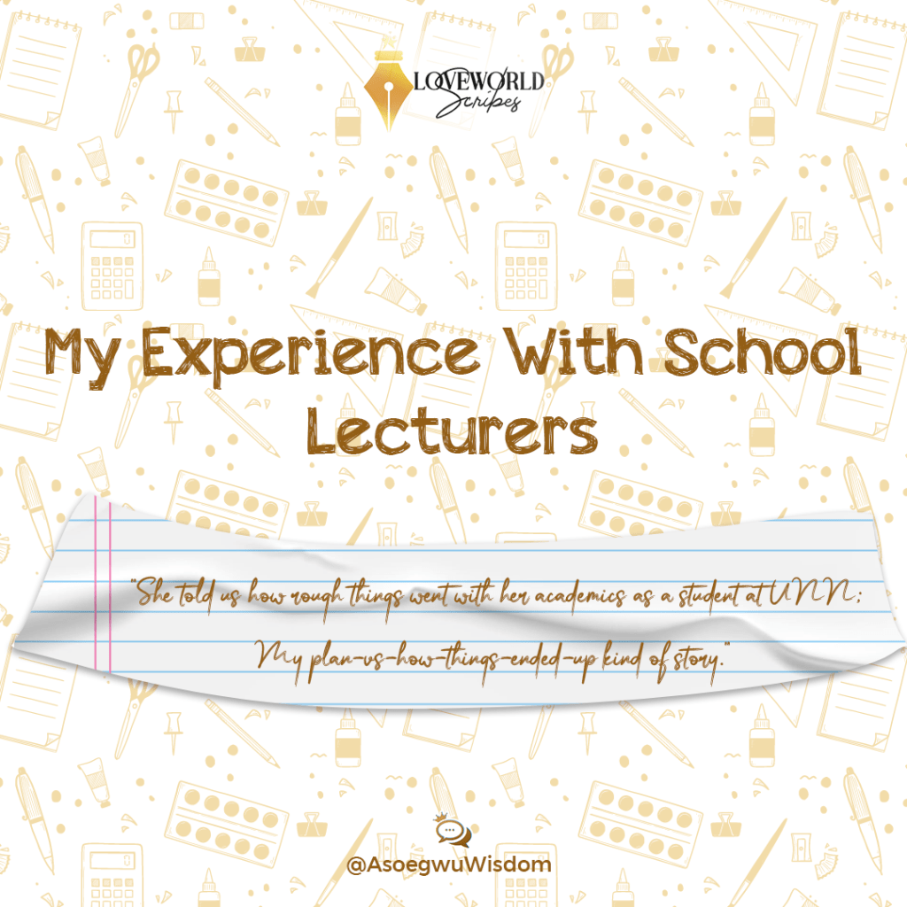 And finally, is an experience with a lecturer who shared a prophecy with us during her class. She is a lecturer in the School of General Studies, UNN, like the first lady I shared about above.